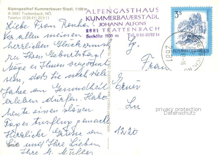 73655255 alte Postkarte Trattenbach Alpengasthof Kummerbauer-Stadl Alpenflora postalisch gelaufen Erhaltung siehe scans [FriedD77] KatCode: 11390122031841