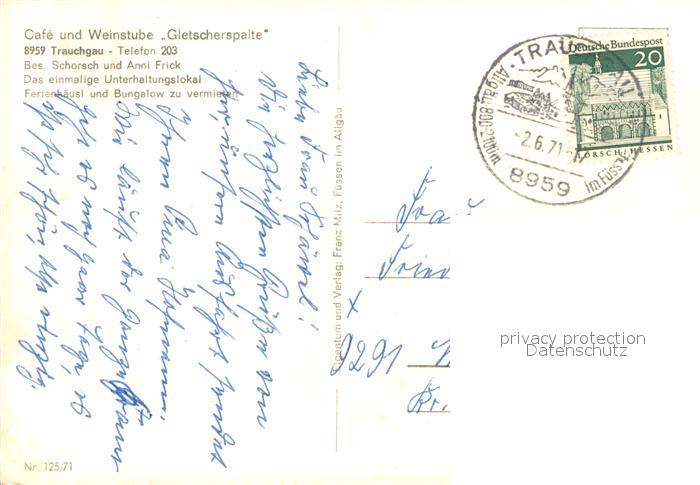 73650955 alte Postkarte Trauchgau Cafe Gletscherspalte Weinstube postalisch gelaufen Erhaltung siehe scans [WerneD78] KatCode: 11110009777173