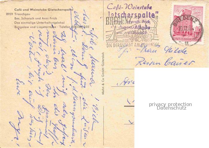 34145737 alte Postkarte Trauchgau Halblech Ostallgaeu Bayern Cafe und Weinstube Gletscherspalte postalisch gelaufen Erhaltung siehe scans [WerneD78] KatCode: 11110009777173