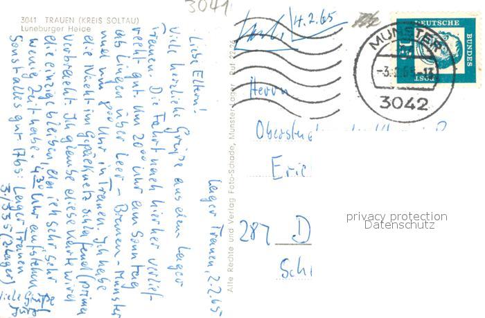 73690407 alte Postkarte Trauen Im Dorf Alte Lueneburger Heerstrasse Loens Gedenkstein Schule postalisch gelaufen Erhaltung siehe scans [WerneD78] KatCode: 11110003358016