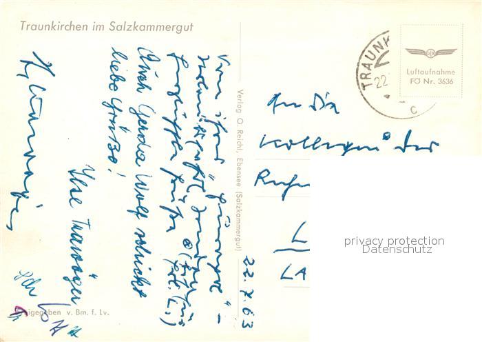 73102377 alte Postkarte Traunkirchen Fliegeraufnahme postalisch gelaufen Erhaltung siehe scans [PaolaD17] KatCode: 11390315040718