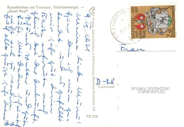 12945900 alte Postkarte Traunkirchen Hotel Post postalisch gelaufen Erhaltung siehe scans [NatalD47] KatCode: 11390315040718