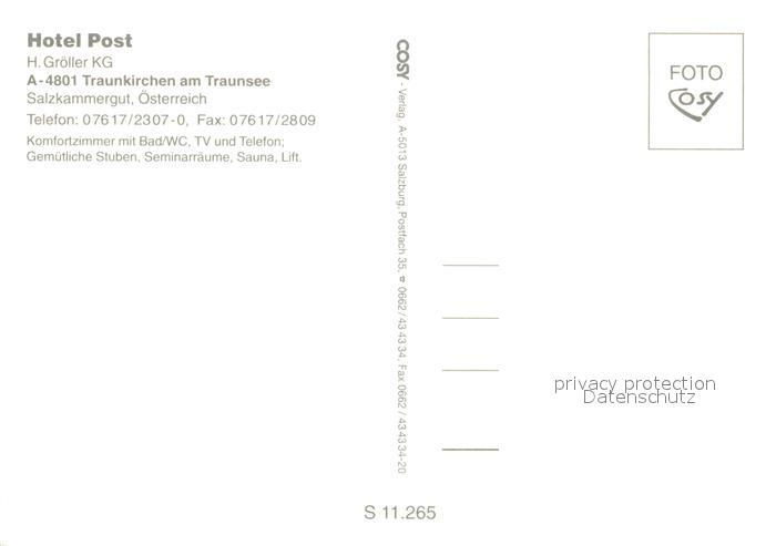 73604545 Traunkirchen Hotel Post postalisch nicht gelaufen Erhaltung siehe scans [PaolaD17] KatCode: 11390315040718