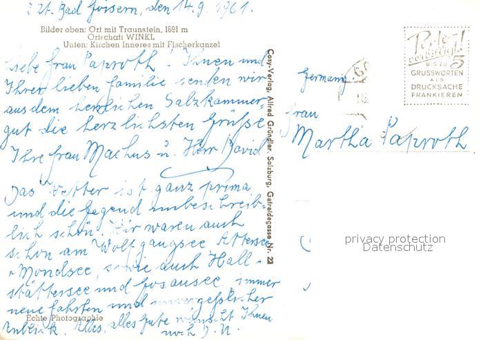 72985577 alte Postkarte Traunkirchen Panorama Traunsee mit Traunstein Winkl Kirchen mit Fischerkanzel Alpen postalisch gelaufen Erhaltung siehe scans [FriedD77] KatCode: 11390315040718