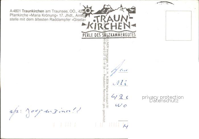 72271725 alte Postkarte Traunkirchen Pfarrkirche Maria Kroenung Raddampfer Gisela postalisch gelaufen Erhaltung siehe scans KatCode: 11390315040718