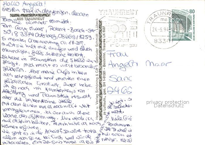 72534338 alte Postkarte Traunreut Fliegeraufnahme postalisch gelaufen Erhaltung siehe scans [LiesaD40 kt120box] KatCode: 11110009189154