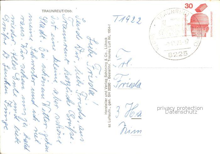 72115520 alte Postkarte Traunreut Fliegeraufnahme postalisch gelaufen Erhaltung siehe scans KatCode: 11110009189154