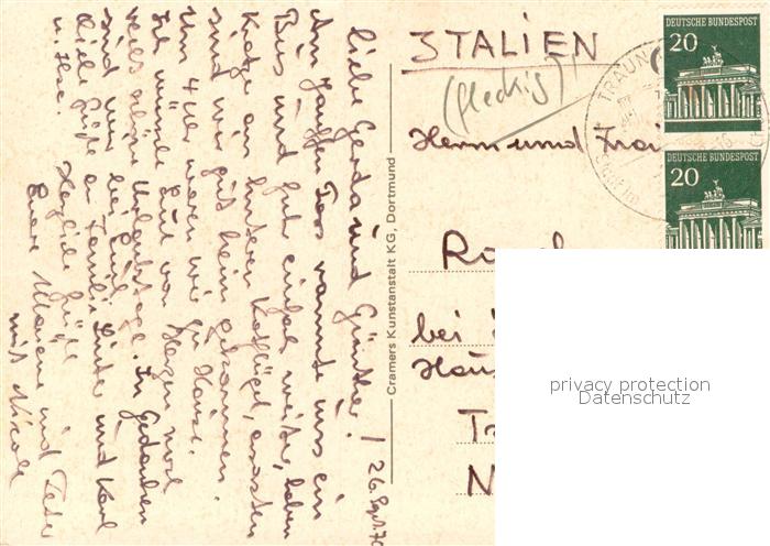 73672864 alte Postkarte Traunreut Fliegeraufnahme Ev Kirche Schwimmbad Stadtplatz Kath Kirche Teilansicht postalisch gelaufen Erhaltung siehe scans [WerneD78] KatCode: 11110009189154