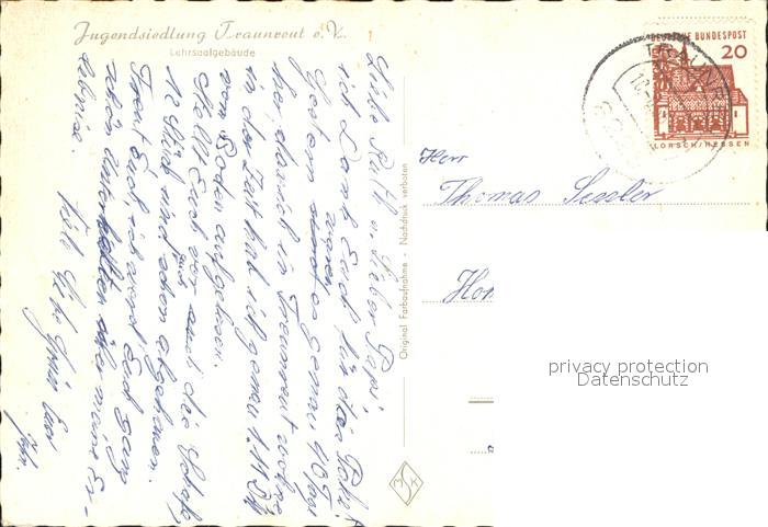 72112573 alte Postkarte Traunreut Jugendsiedlung Lehrsaalgebaeude postalisch gelaufen Erhaltung siehe scans KatCode: 11110009189154