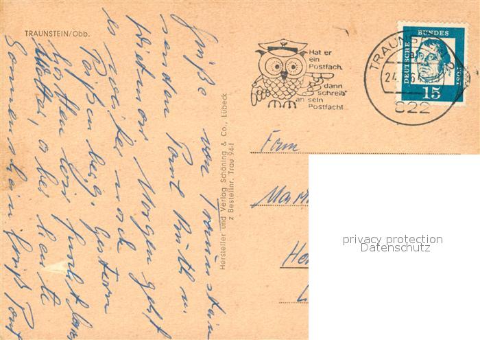 73070291 alte Postkarte Traunstein Oberbayern postalisch gelaufen Erhaltung siehe scans [NatalD47] KatCode: 11110009189155