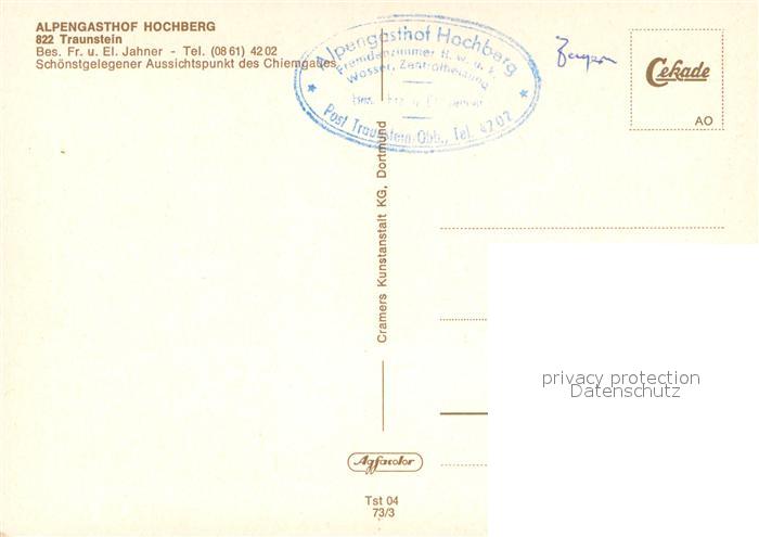 73722584 Traunstein Oberbayern Alpengasthof Hochberg Aussenansicht postalisch nicht gelaufen Erhaltung siehe scans [LiesaD40] KatCode: 11110009189155