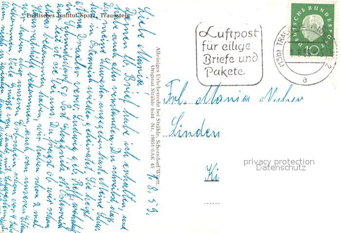 72986204 alte Postkarte Traunstein Oberbayern Englisches Institut Sparz Fliegeraufnahme postalisch gelaufen Erhaltung siehe scans [FriedD77] KatCode: 11110009189155