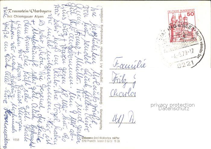 72529276 alte Postkarte Traunstein Oberbayern mit Hochfelln und Hochgern postalisch gelaufen Erhaltung siehe scans KatCode: 11110009189155