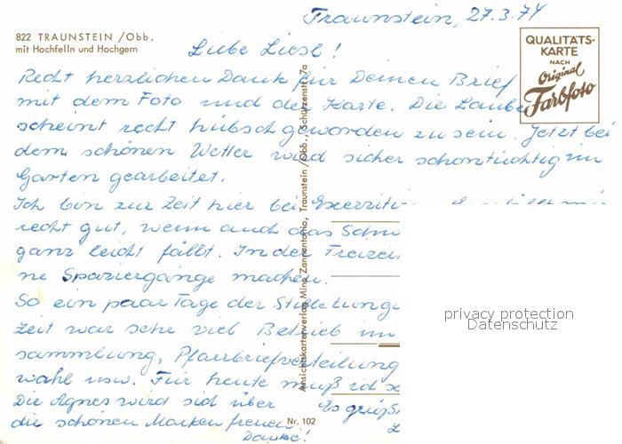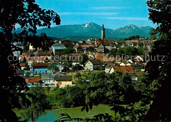 72641489 Traunstein Oberbayern Ortsansicht mit Kirche Hochfelln Hochgern Chiemgauer Alpen postalisch nicht gelaufen Erhaltung siehe scans [FriedD77] KatCode: 11110009189155