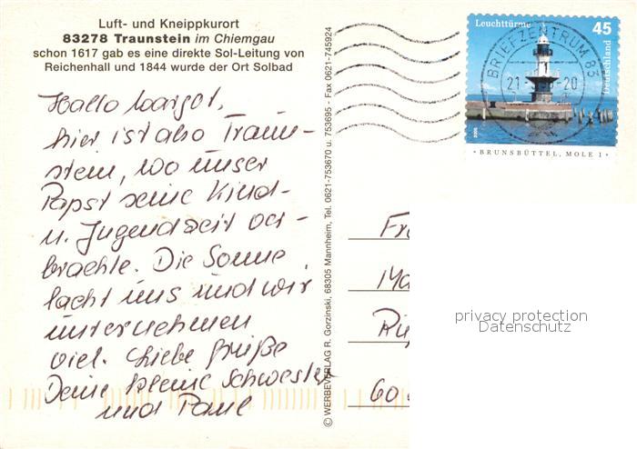 73266896 alte Postkarte Traunstein Oberbayern Stadtpanorama Alpen Strassenmotiv Innenstadt postalisch gelaufen Erhaltung siehe scans [FriedD77] KatCode: 11110009189155