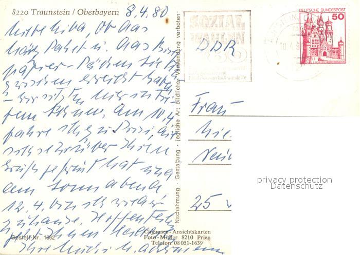 73735827 alte Postkarte Traunstein Oberbayern Stadtpanorama mit Chiemgauer Alpen postalisch gelaufen Erhaltung siehe scans [FriedD77] KatCode: 11110009189155