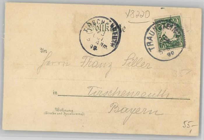 40214510 Traunstein Oberbayern Traunstein [Stempelabschlag] Hochberg Gasthaus zur hohen Wart x 1899 KatCode 11110009189155