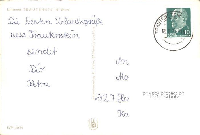 72334865 alte Postkarte Trautenstein Harz postalisch gelaufen Erhaltung siehe scans KatCode: 11110015085150