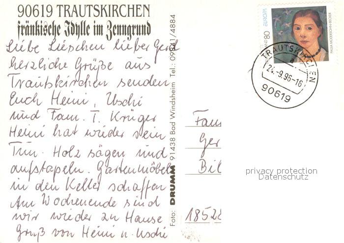 73672859 alte Postkarte Trautskirchen Panorama Dorfstrasse Rathaus postalisch gelaufen Erhaltung siehe scans [WerneD78] KatCode: 11110009575166