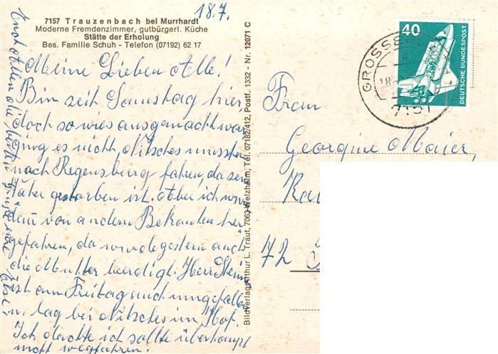 73878731 alte Postkarte Trauzenbach Grosserlach Gasthof Pension zum Waldblick Ortsansicht Eichhoernchen postalisch gelaufen Erhaltung siehe scans [FriedD77] KatCode: 11110008119024