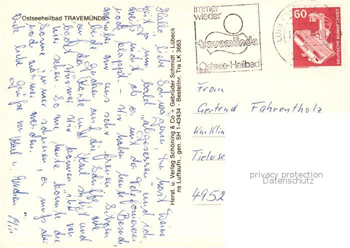 73544541 alte Postkarte Travem?nde Ostseebad Fliegeraufnahme Hafen postalisch gelaufen Erhaltung siehe scans [LiesaD40] KatCode: