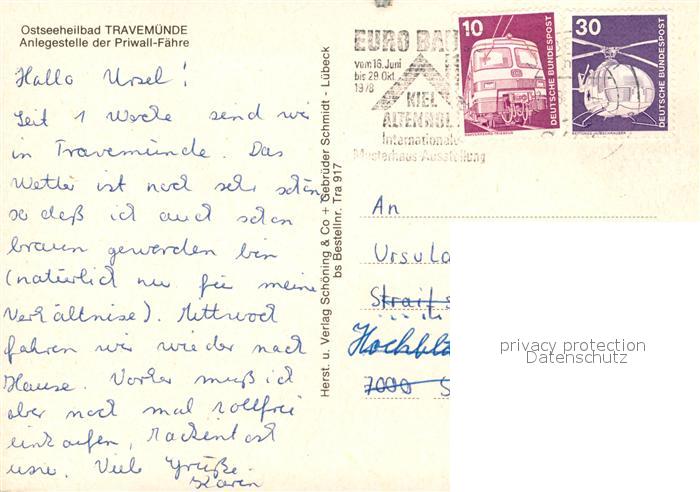 73224623 alte Postkarte Travemuende Ostseebad Anlegestelle Priwall Faehre postalisch gelaufen Erhaltung siehe scans [KathaD81] KatCode: 11110001003000
