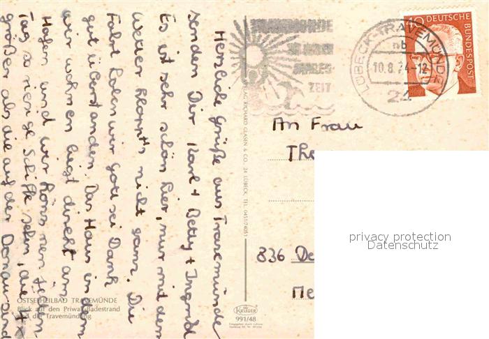 72673501 alte Postkarte Travemuende Ostseebad Blick auf den Priwall Badestrand und die Travemuendung Fliegeraufnahme postalisch gelaufen Erhaltung siehe scans [FriedD77] KatCode: 11110001003000