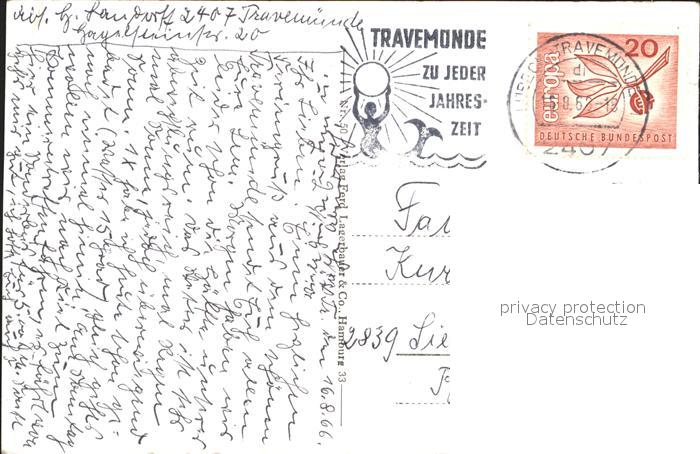 72261357 alte Postkarte Travemuende Ostseebad Blick vom Strandhaus Becker postalisch gelaufen Erhaltung siehe scans KatCode: 11110001003000