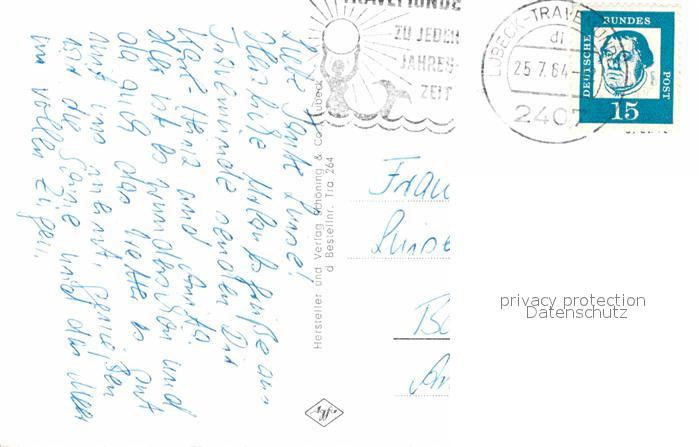 72826746 alte Postkarte Travemuende Ostseebad Brodtener Ufer Hafen Promenade Casino Zonengrenze Hafen postalisch gelaufen Erhaltung siehe scans [LiesaD40] KatCode: 11110001003000