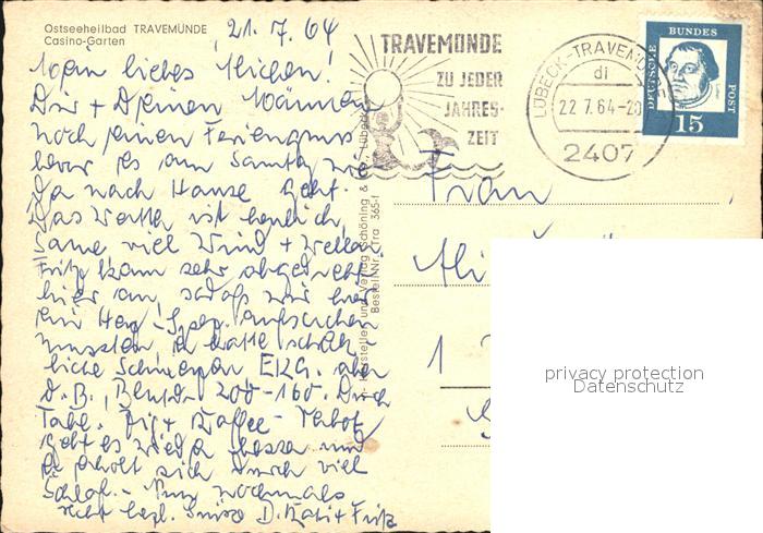 72530113 alte Postkarte Travemuende Ostseebad Casino-Garten postalisch gelaufen Erhaltung siehe scans KatCode: 11110001003000