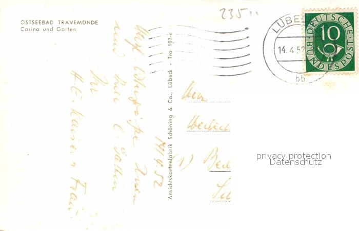 72892498 alte Postkarte Travemuende Ostseebad Casino Garten postalisch gelaufen Erhaltung siehe scans [PaolaD17] KatCode: 11110001003000