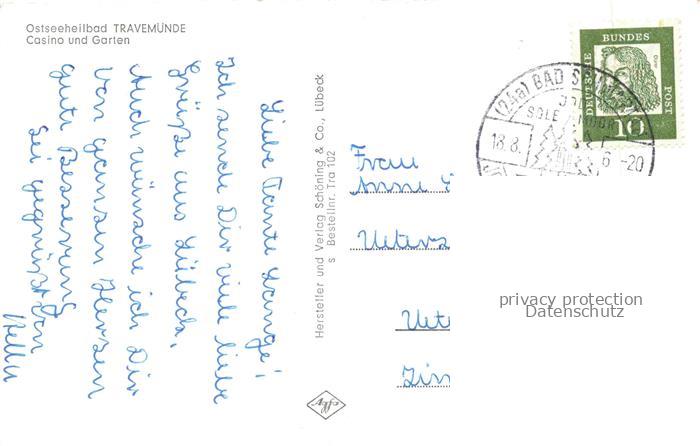 74154105 alte Postkarte TRAVEMueNDE Ostseebad Casino und Garten postalisch gelaufen Erhaltung siehe scans [WerneD78] KatCode: 11110001003000