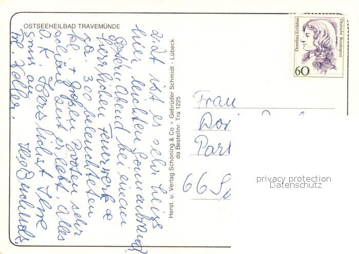 73224624 alte Postkarte Travemuende Ostseebad Fachwerkhaeuser Segelschiff Hochhaus postalisch gelaufen Erhaltung siehe scans [KathaD81] KatCode: 11110001003000
