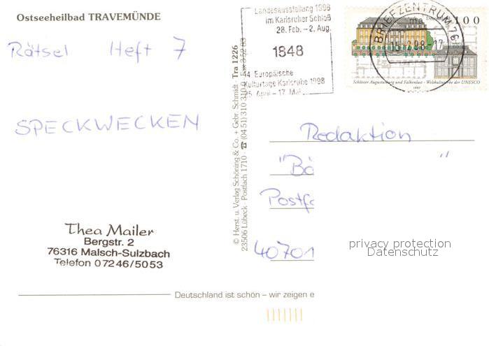 73224625 alte Postkarte Travemuende Ostseebad Fachwerkhaeuser postalisch gelaufen Erhaltung siehe scans [KathaD81] KatCode: 11110001003000