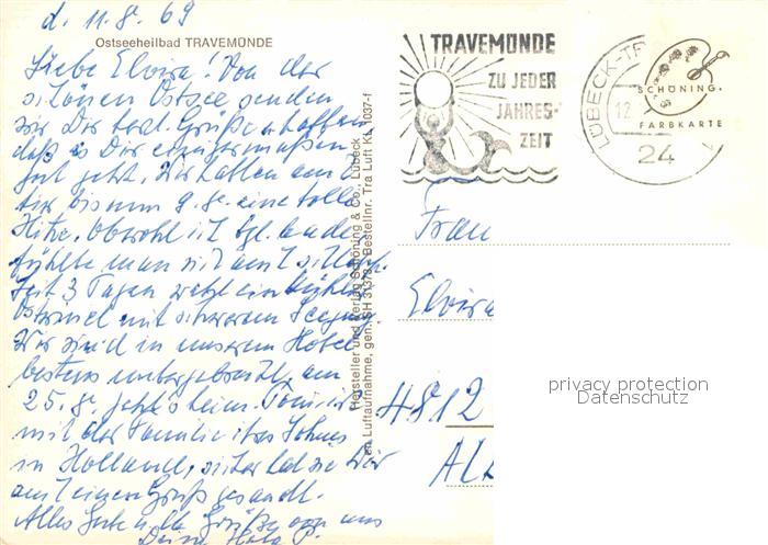 72900470 alte Postkarte Travemuende Ostseebad Fliegeraufnahme postalisch gelaufen Erhaltung siehe scans [FriedD77] KatCode: 11110001003000
