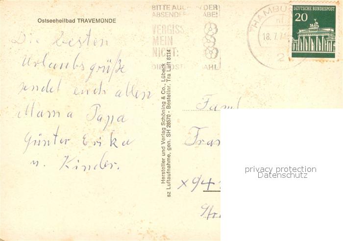 73636584 alte Postkarte Travemuende Ostseebad Fliegeraufnahme postalisch gelaufen Erhaltung siehe scans [WerneD78] KatCode: 11110001003000