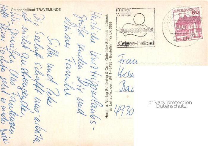 73129389 alte Postkarte Travemuende Ostseebad Fliegeraufnahme postalisch gelaufen Erhaltung siehe scans [PaolaD17] KatCode: 11110001003000