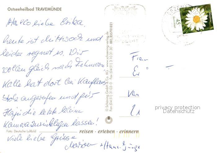 73062750 alte Postkarte Travemuende Ostseebad Fliegeraufnahme postalisch gelaufen Erhaltung siehe scans [KathaD81] KatCode: 11110001003000