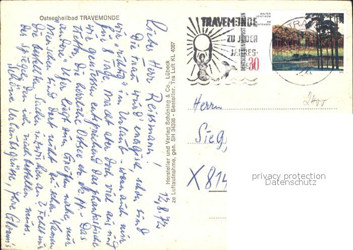 72495594 alte Postkarte Travemuende Ostseebad Fliegeraufnahme Hafeb postalisch gelaufen Erhaltung siehe scans KatCode: 11110001003000
