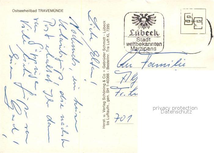 73226674 alte Postkarte Travemuende Ostseebad Fliegeraufnahme Hafen postalisch gelaufen Erhaltung siehe scans [KathaD81] KatCode: 11110001003000