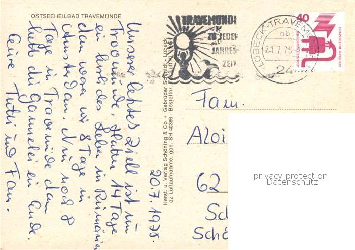 72987539 alte Postkarte Travemuende Ostseebad Fliegeraufnahme Hafen Strand postalisch gelaufen Erhaltung siehe scans [LiesaD40] KatCode: 11110001003000