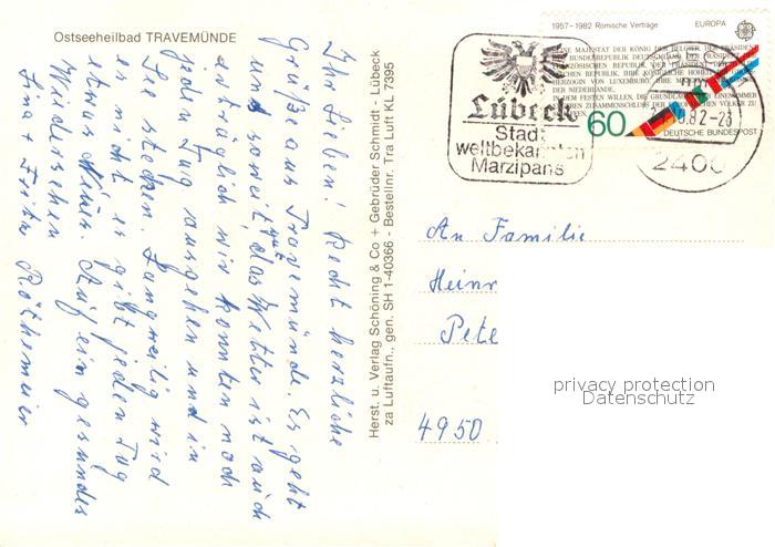 73643703 alte Postkarte Travemuende Ostseebad Fliegeraufnahme mit Hotel und Viermastsegler postalisch gelaufen Erhaltung siehe scans [WerneD78] KatCode: 11110001003000