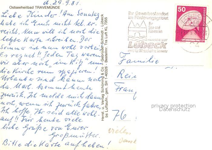 73322944 alte Postkarte Travemuende Ostseebad Fliegeraufnahme mit Jachthafen postalisch gelaufen Erhaltung siehe scans [WerneD78] KatCode: 11110001003000