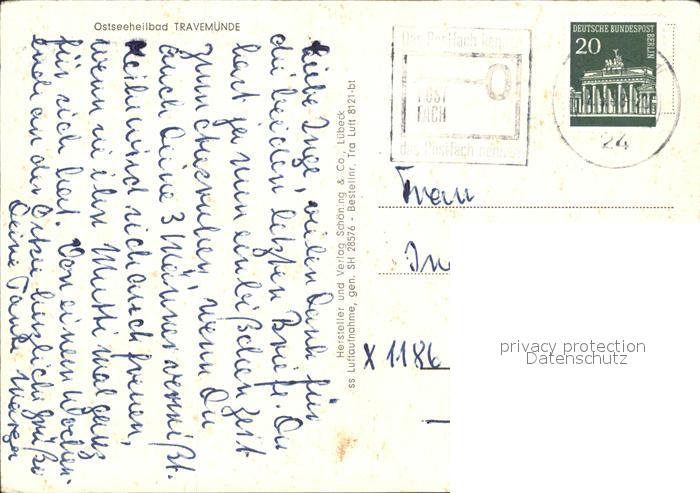 72580893 alte Postkarte Travemuende Ostseebad Fliegeraufnahme mit Strand postalisch gelaufen Erhaltung siehe scans [LiesaD40] KatCode: 11110001003000
