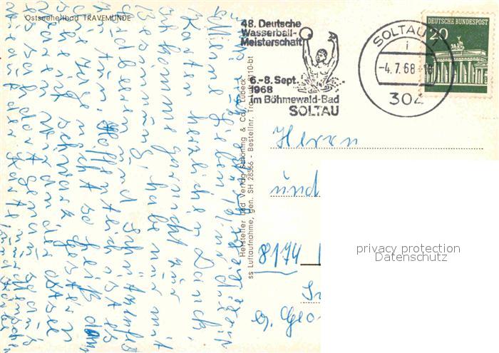 72863289 alte Postkarte Travemuende Ostseebad Fliegeraufnahme mit Strand postalisch gelaufen Erhaltung siehe scans [LiesaD40] KatCode: 11110001003000