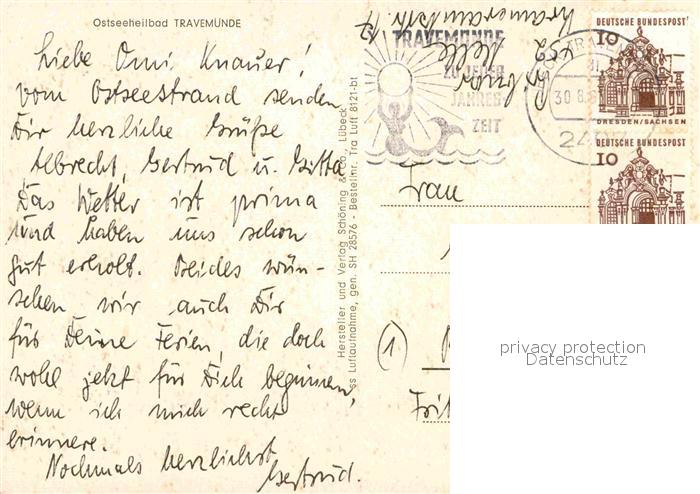 72792419 alte Postkarte Travemuende Ostseebad Fliegeraufnahme mit Strand postalisch gelaufen Erhaltung siehe scans [LiesaD40] KatCode: 11110001003000