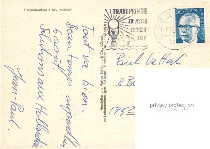 72727752 alte Postkarte Travemuende Ostseebad Fliegeraufnahme mit Strand postalisch gelaufen Erhaltung siehe scans [LiesaD40] KatCode: 11110001003000