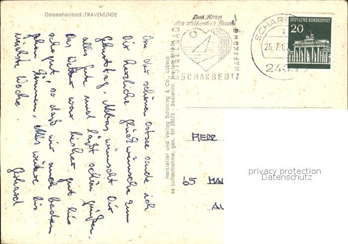 72494109 alte Postkarte Travemuende Ostseebad Fliegeraufnahme mit Viermaster Passat postalisch gelaufen Erhaltung siehe scans KatCode: 11110001003000