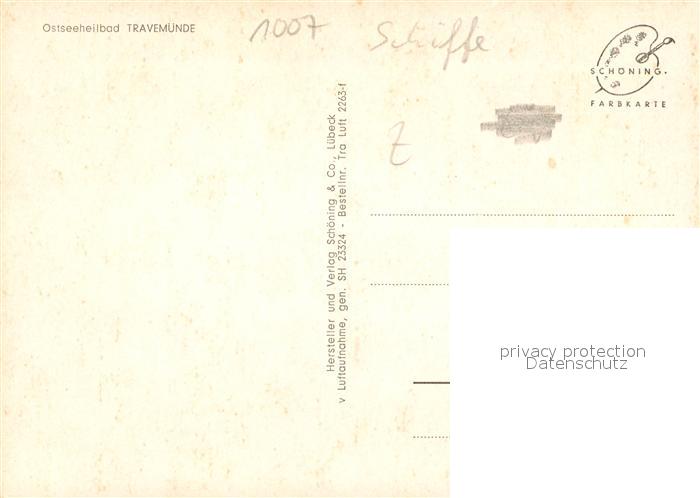 73142305 Travemuende Ostseebad Fliegeraufnahme mit Viermastsegler postalisch nicht gelaufen Erhaltung siehe scans [WerneD78] KatCode: 11110001003000