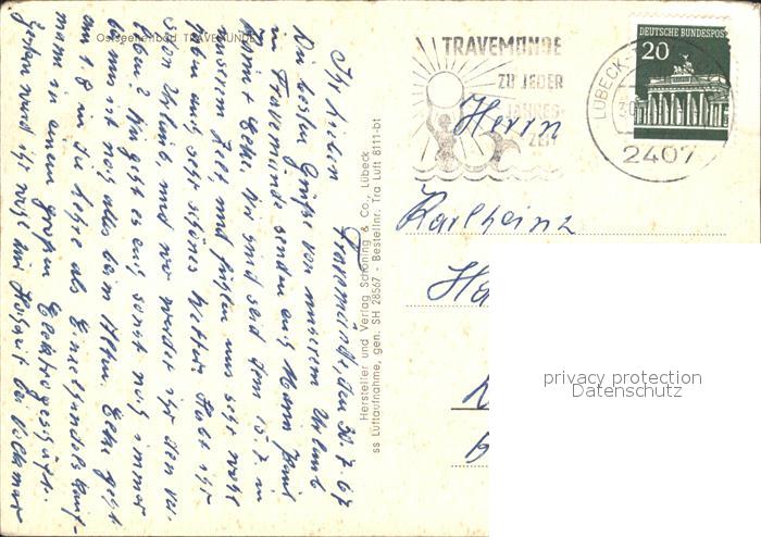 72247970 alte Postkarte Travemuende Ostseebad Fliegeraufnahme Strand postalisch gelaufen Erhaltung siehe scans KatCode: 11110001003000